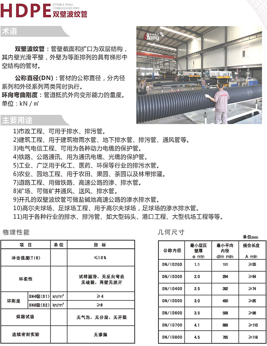 聚乙烯-聚氯乙烯共混(MPVE)螺旋纏繞管屬于建筑材料,具體來說是一種利用塑料板帶纏繞制作的管道。主要應(yīng)用于各種工程機械和礦山液壓設(shè)備及有耐磨要求的電線電纜保護。因其可以完全覆蓋被保護產(chǎn)品,形成有效磨損和抗紫外線的保護作用而在很多桿狀物體外起保護作用。大口徑則為排水排污,纏繞管的生產(chǎn)采用的是熱定型工藝,一般分一次定型和二次定型加工兩種。